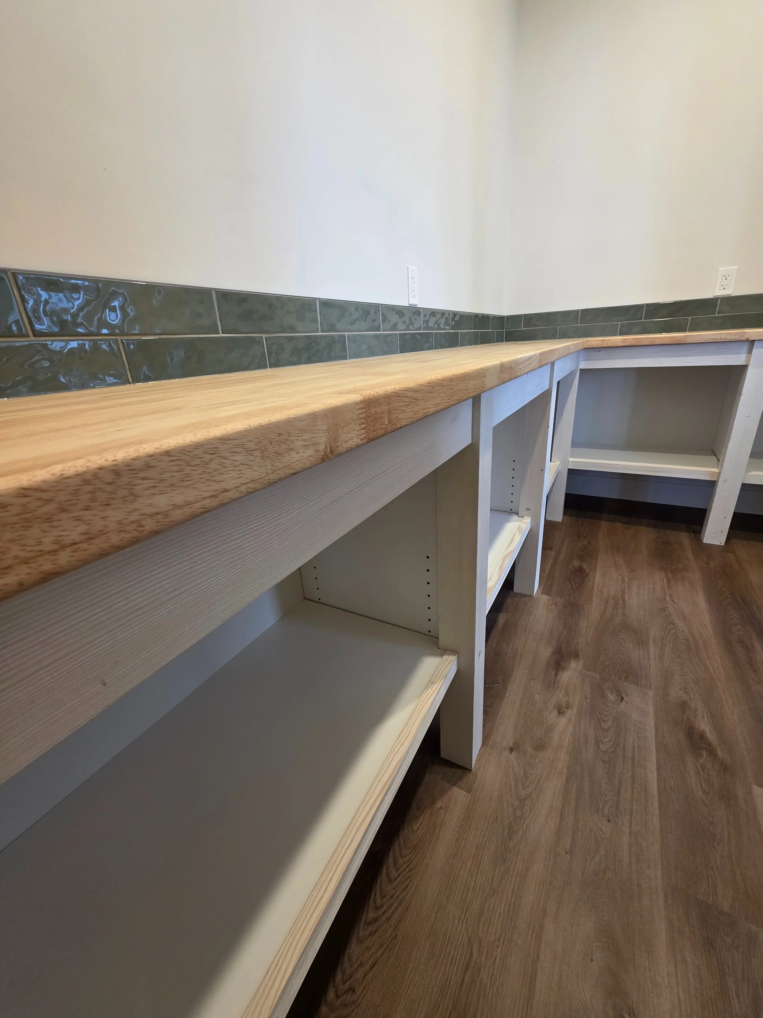 Butler’s pantry offering additional counter space, storage, and a clutter-free main kitchen